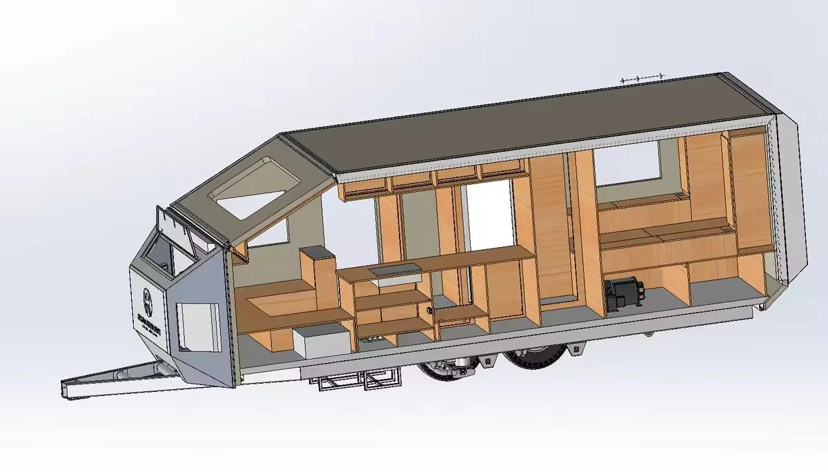Every line, angle, and feature of the Titan Edition has been engineered with purpose. Built on a dual-axle, off-road chassis, the Titan delivers exceptional towing stability while maintaining the rugged agility needed to tackle challenging terrain. Its aggressive geometry — including the angled front nose and faceted rear panels — is designed not only to turn heads, but to improve aerodynamics and deflect trail obstacles.